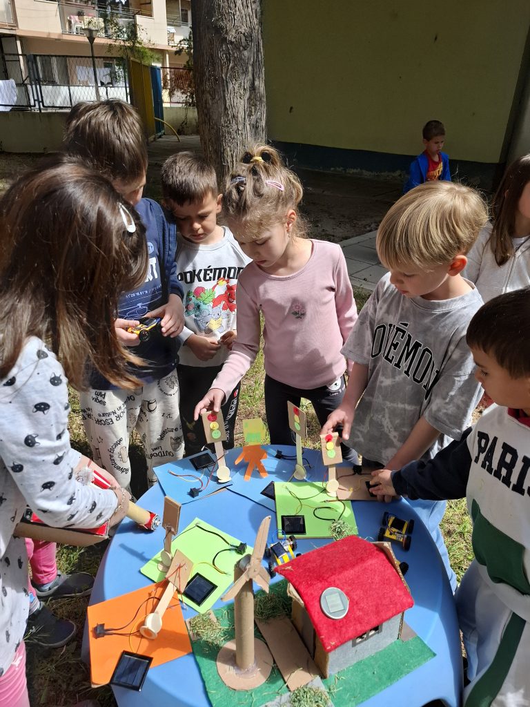 Središnji dio radionice bio je usmjeren na istraživanje modela održivog grada koji uključuje kuću sa solarnim panelima, vjetrenjaču i semafor. Testiranjem solarnih autića i modela semafora djeca su uočavala pretvorbu sunčeve energije u električnu, a zatim u energiju svjetlosti i pokreta. Opažanjem, postavljanjem pitanja i donošenjem zaključaka razvijala su početne kompetencije znanstvene pismenosti, tehničkog razumijevanja i inženjerskog načina razmišljanja. Djeca su tijekom cijele radionice pokazala veliko zanimanje, znatiželju i aktivno sudjelovanje, a posebno ih je razveselilo kada su sama mogla „pokrenuti“ energiju i vidjeti konkretne rezultate svog istraživanja. Radionica je uspješno ostvarila planirane ciljeve te pridonijela razvoju STEM kompetencija i ekološke svijesti o važnosti korištenja obnovljivih izvora energije.