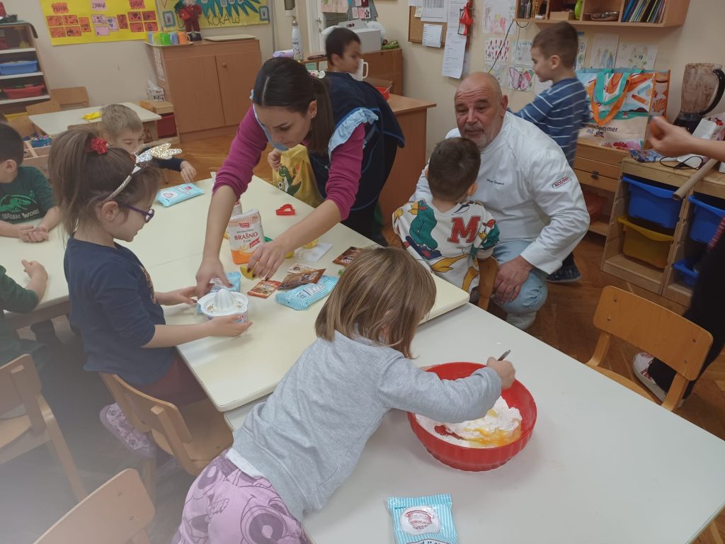 Kulinarska radionica chefa Hrvoja Zirojevića i kuhara Srđana Lukića u DV Koralj, skupina Ježinci. Koralj je mirisao po najboljim božićnim kolačima i zapisali smo neke nove recepte.