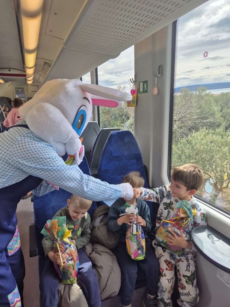 Posebno iznenađenje i uzbuđenje priredio je dolazak uskrsnog zeke koji je razveselio mališane prigodnim poklonima.  Dječja radost i smijeh obilježili su ovo putovanje vlakom, koje će svima ostati u lijepom sjećanju.